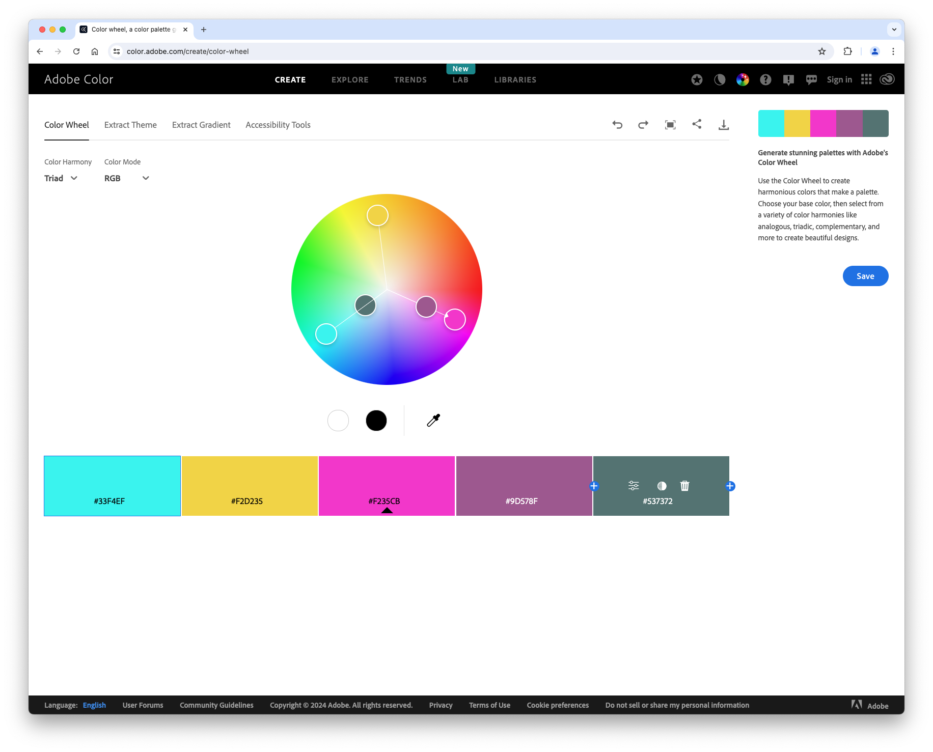 - 网站配色。可以从比较好看的海报或者网站上抽取颜色。将海报图片或网站截图上传到 adobe color网站adobe color,可生成一组配色。
